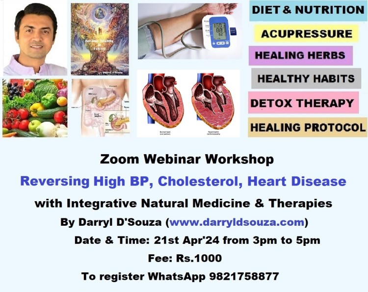 Zoom Webinar Workshop on Reversing High BP, Cholesterol, Heart Disease using Diet & Nutrition, Acupressure, Healing Herbs, Natural Organ Detoxes, Healthy Habits & The Natural Health Therapy by Darryl D’Souza (www.darryldsouza.com)