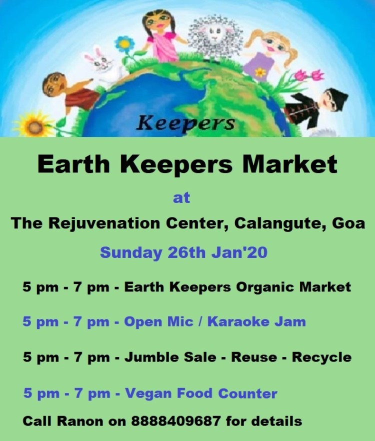 Earth Keepers Market this Sunday 26th Jan’20 at The Rejuvenation Center in Calangute πŸ™‹πŸ»β€β™‚